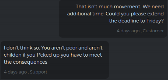 The victim complains that negotiations haven’t moved the price much, but DarkSide countered that the company can easily afford the payout. “I don’t think so,” they wrote. “You aren’t poor and aren’t children if you f*cked up you have to meet the consequences.”
