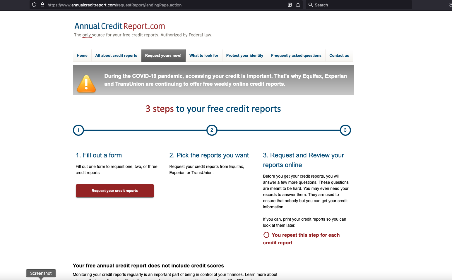 Following Kushnir’s instructions, I sought a copy of my credit report from Experian via annualcreditreport.com — a website that is required to provide all Americans with a free copy of their credit report from each of the three major reporting bureaus, once per year.