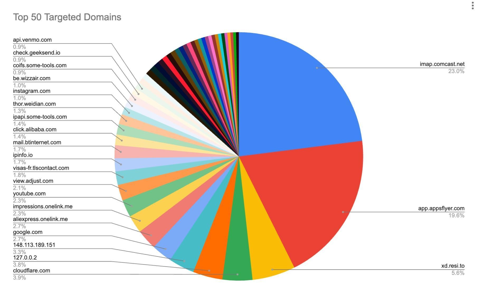 This domain and others connected to early Kimwolf variants spent several weeks topping Cloudflare’s chart of the Internet’s most sought-after domains, edging out Google.com and Apple.com of their rightful spots in the top 5 most-requested domains. That’s because during that time Kimwolf was asking its millions of bots to check in frequently using Cloudflare’s DNS servers.