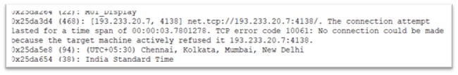 The exe has tried connecting to 193.233.20.11, but server did not respond, and no communication took place.