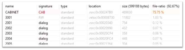 The resource section of this sample has multiples files, out of which CABINET resource holds 75.75% of the total file, which makes the said resource suspicious.