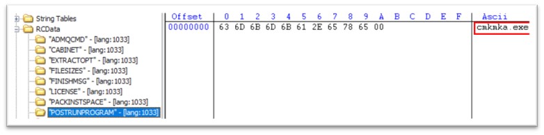 Like RUNPROGRAM, POSTRUNPROGRAM also holds the instruction to run the executable after RUNPROGRAM is executed. Hence, once cydn.exe is executed, vona.exe will be executed.