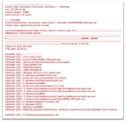 The network activity shows the dll to be connecting to 62.204.41.88. This dll again starts exfiltrating data to C2: