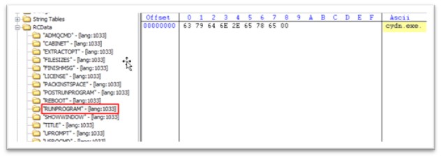 Figure 4: RUNPROGRAM attribute stating “cydn.exe”