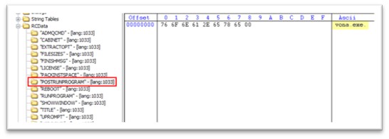 Figure 5: POSTRUNPROGRAM stating “vona.exe”