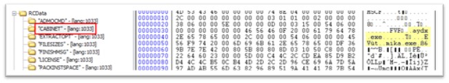 Figure 8: aydx.exe and mika.exe packed in resource section