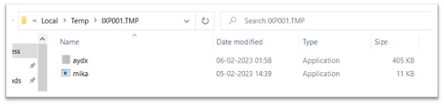 Like the previous file, cydn.exe also had two executables archived in its resource section, named aydx.exe and mika.exe. The “RUNPROGRAM” attribute commands to run aydx.exe and the “POSTRUNPROGRAM” attribute commands to execute mika.exe once aydx.exe is executed. These files are also dropped in TEMP folder.
