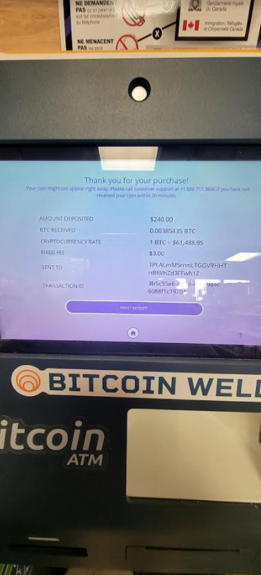 Mitch didn’t bite, but neither would he be dissuaded that I was at fault for his wayward funds. He shared a picture showing funds he’d sent to the bitcoin address instructed by BriansClub[.]com — 1PLALmM5rrmLTGGVRHHTnB6VnZd3FFwh1Z — using a Bitcoin ATM in Canada.