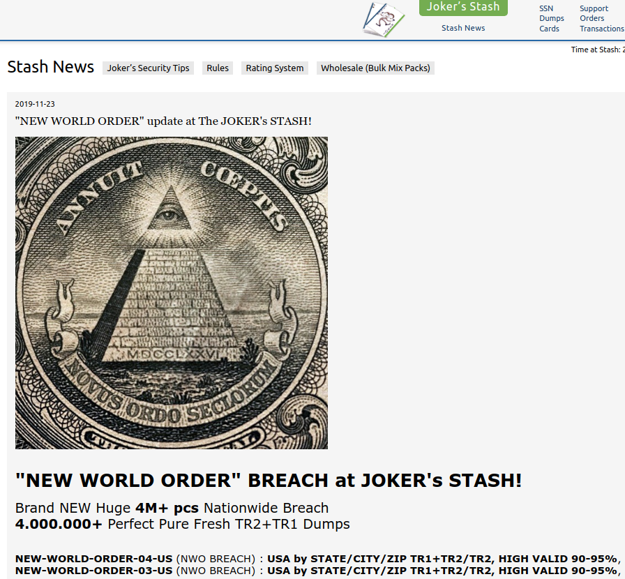 According to Gemini, Joker’s Stash likely delayed the debut of the New World Order cards to keep from flooding the market with too much stolen card data all at once, which can have the effect of lowering prices for stolen cards across the board.
