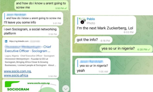 Abnormal Security documented how it tied the email back to a young man in Nigeria who acknowledged he was trying to save up money to help fund a new social network he is building called Sociogram.