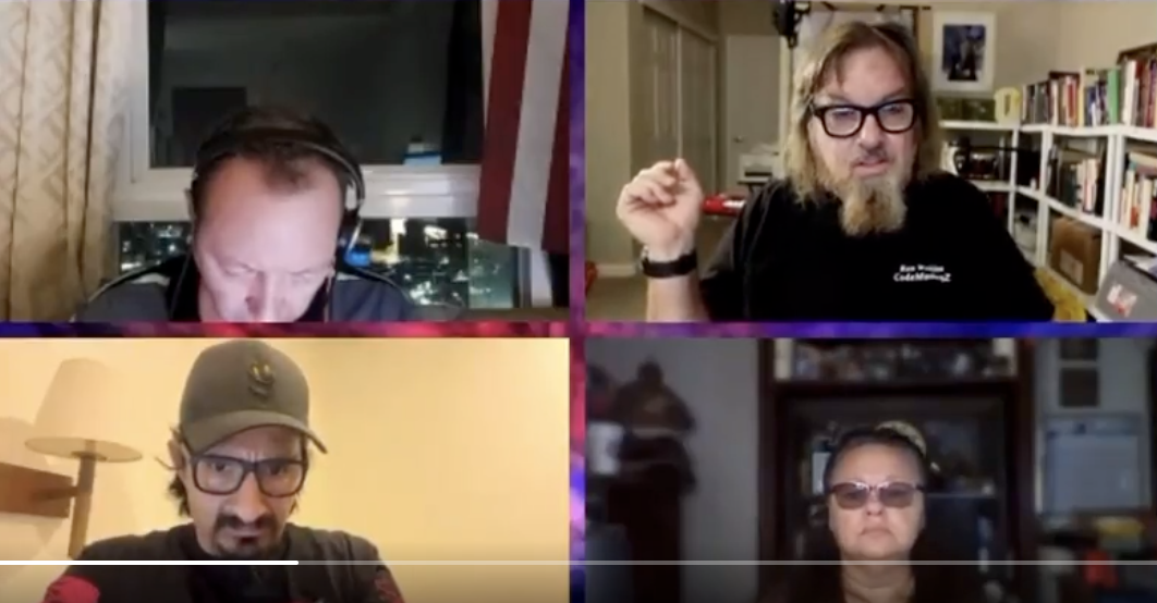Jim Waktins (top right), in a video address to his followers on Tuesday after 8kun was taken offline.
